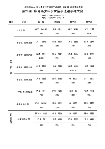 令和7年10月26日 第28回広島県少年少女空手道選手権大会
